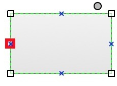 5)选取一个“矩形”控件,并将它拖动到制作面板中,可以看到它的四条边,有四个蓝色的“叉形”