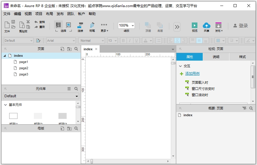 明确界面框架后,接下来就可以利用页面导航面板来定义所要设计的页面。页面导航面板是用于管理所设计的页面,可以添加、删除及对页面层次进行重新组织。