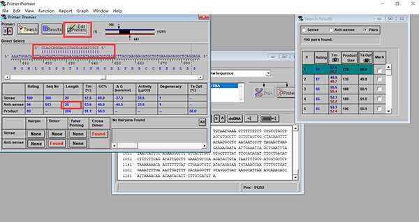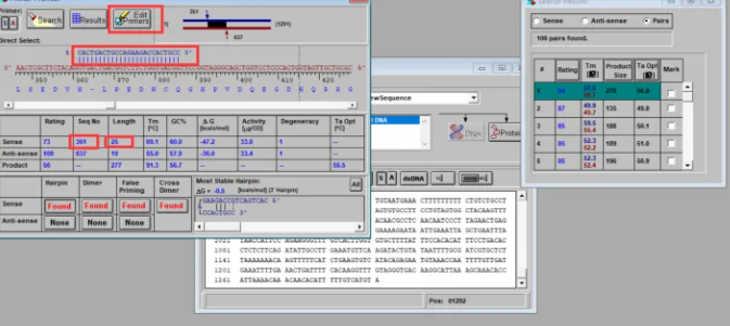 首先把光标放在引物的位置,将引物向后移动一个,可以观察到引物向后移动了一个碱基,长度增加了,此时点击Edit Primers。