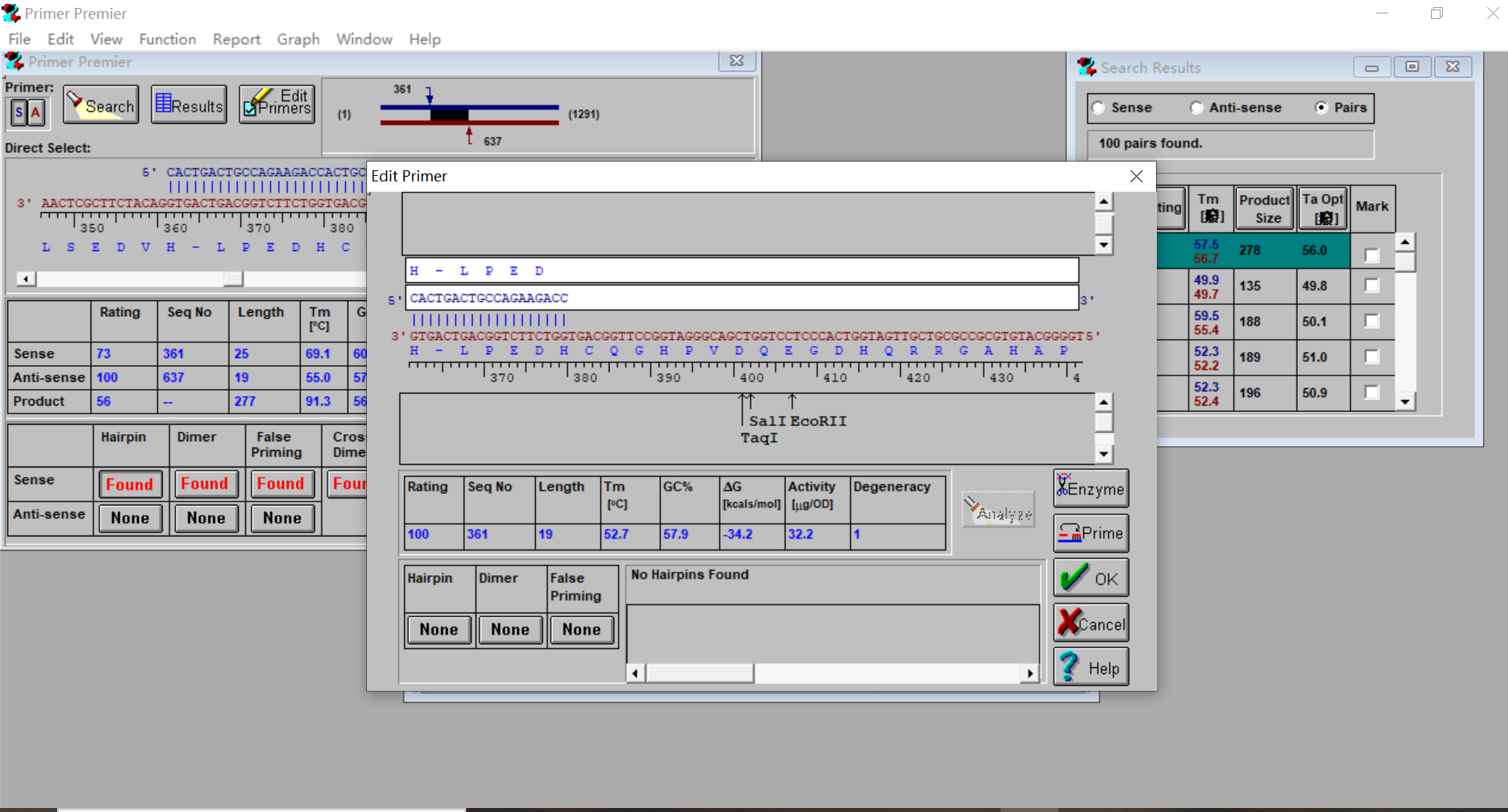 4、总之,“Premier”有优秀的引物自动搜索功能,同时可进行部分指标的分析,而且容易使用,是一个相当不错的软件
