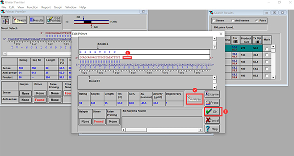 注:由于基因序列本身的差异,一般很难调到所有原则都满足,但是可以对系统给出的引物中的前几对进行调整,尽可能满足以上原则。