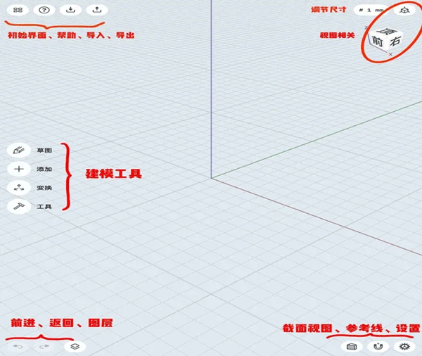 1、 这软件的工作界面较为清爽干净,建模的基本思路依次是——绘制平面草图,即2D 草图,接着对其进行3D化,并按需求对3D模型进行修改:设计者先画出一张平面的草图,用 Apple Pencil 点击该闭合平面,将其向上拉伸,使其拥有了三维的高度,然后对模型进行调整(例如倒角、修改边长、模型与模型相拼合等),直到做出自己想要的样子。