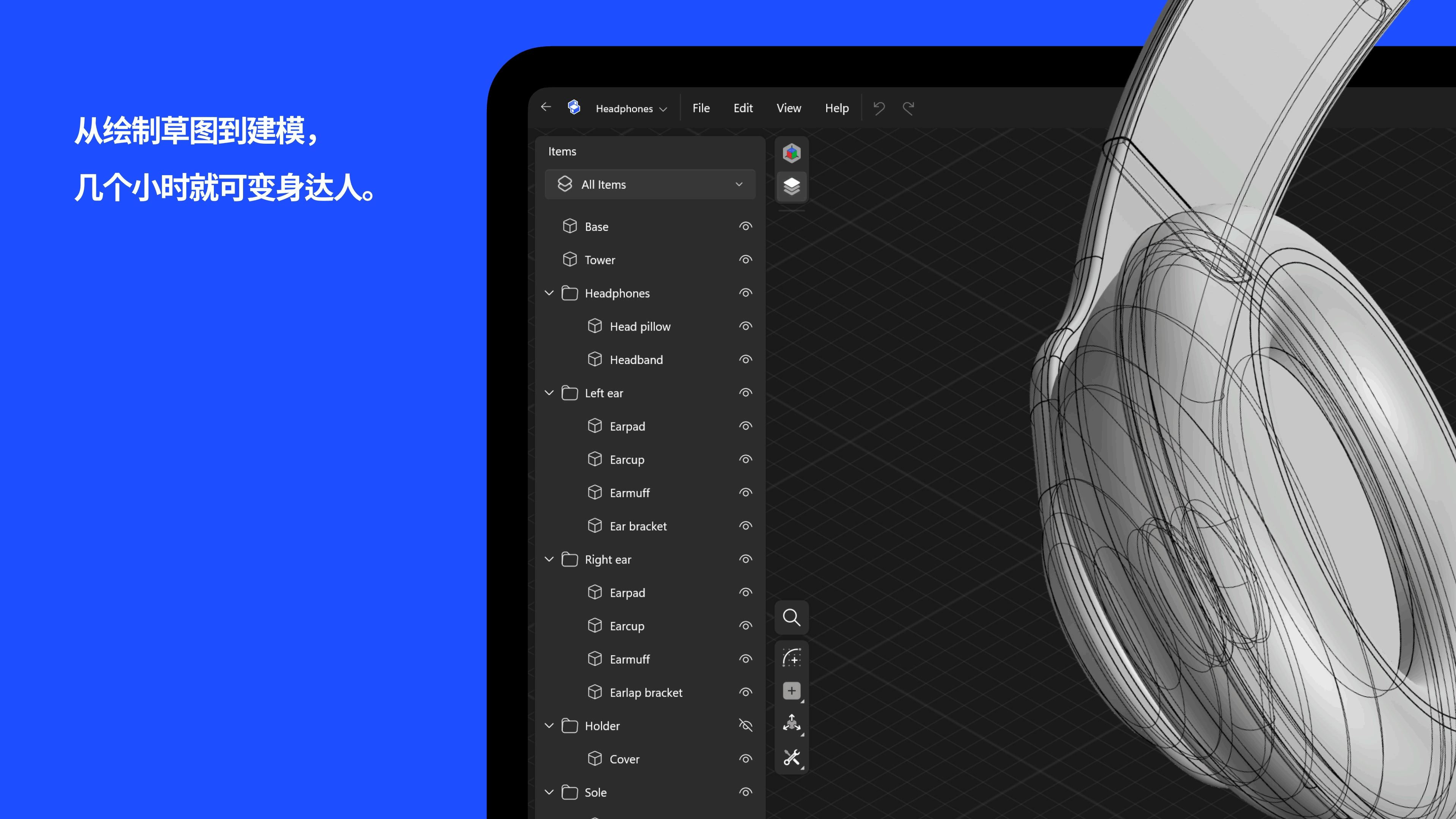 自动识别几何关系(垂直、平行、对称),支持约束驱动的2D草图,一键生成3D实体。