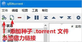 1、点击左上角两个图标,分别添加磁力链接或种子;