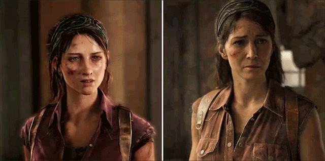 1、首先下图可以看出,重制版角色模块拥有更高解像度,角色直接使用《最后生还者2》中的模型,人物表情更加细腻。皮肤和服装材质都有不小的进步。