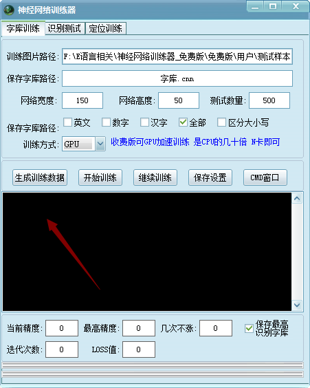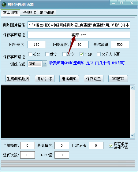 2、神经网络训练器官方版可以识别字库内容,可以独立保存字库。