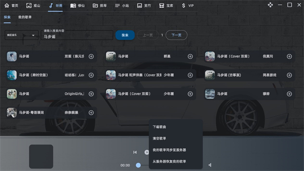2、点击听雨板块,输入你想要的音乐搜索,可以在线播放,也可以点击三个小点弹出下载选项。