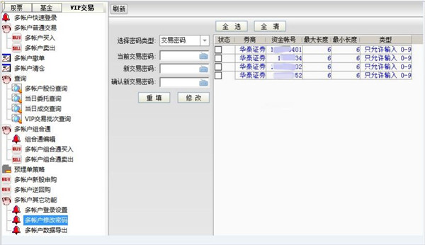 点击 VIP 交易 — 多帐户其他功能— 多帐户修改密码,进入多帐户修改密码界面。
