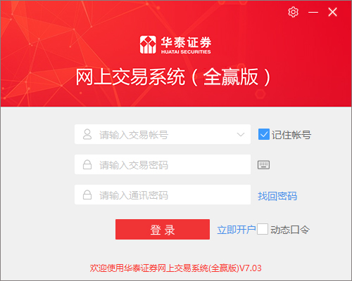 华泰证券通达信全赢版是一款由华泰证券股份有限公司推出的股票行情软件,该软件采用了最佳线路方案,为用户提供实时行情以及交易数据,同时还拥有丰富的自动交易策略和组合策略,从而能够帮助用户自定义下单、委托下单和闪电下单,以及多种自动仓位控制策略,并且还可以为用户提供沪深股市、港股、期货等多市场行和资讯,甚至还拥有公式,选股、画线、多股、复权等分析手段,来帮助用户更好的智能选股,满足不同交易者的交易需求。除此之外,相比于之前的版本来说,华泰证券全赢版也是新增加了一些实用的功能,其中就包括新增动态口令用户应急登录和动态口令同步、新增预埋单委托功能等。而且使用该软件不仅仅是进行的综合升级,还优化股票交易、新增信用交易哦,并且还可以通过用户认证、数据加密、帐户绑定等技术手段为你的网上交易保驾护航,让用户使用起来更加的放心,有需要的朋友可千万不要错过哦。