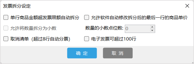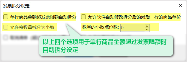 ③ 单行商品金额超过发票限额时自动拆分选项设定
