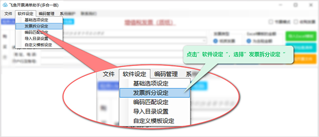 ① 单击“软件设定”菜单,选择“发票拆分设定”