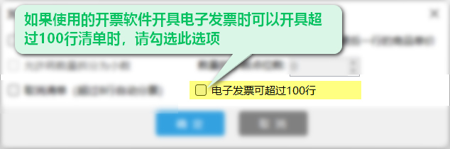 ⑤ 税务Ukey和百旺税控盘电子发票允许超过100行的选项设定