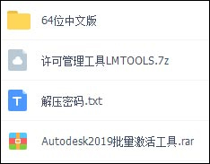 1、下载解压,得到autodesk navisworks manage 2019简体中文版、许可管理工具和批量注册激活工具;