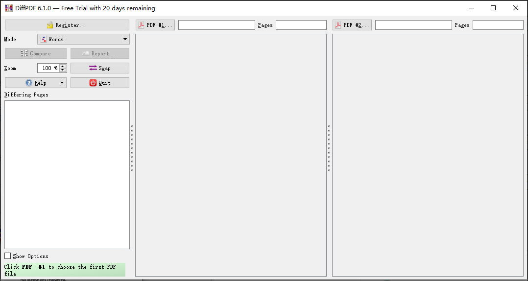 1、运行软件,点击PDF#1和PDF#2添加两个要对比的pdf文件,