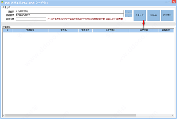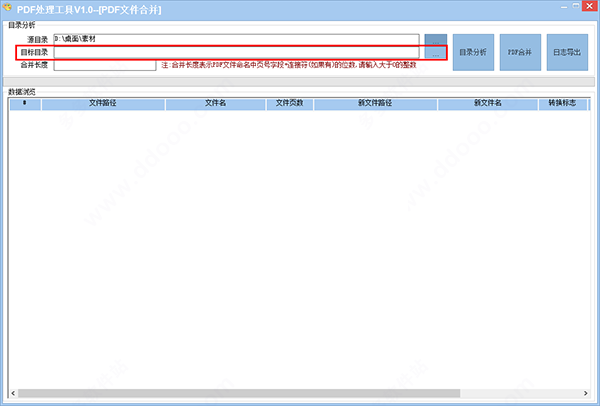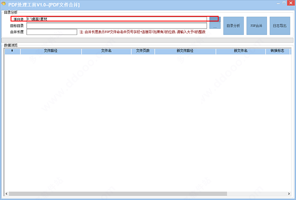 4、在源目录一栏下,您可以设置PDF文件所在位置(建议整理要合并的文件到一个文件夹)。