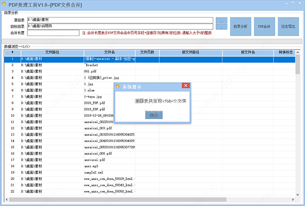 软件特点也很明显:独立的功能模块,操作日志详细,还能自动分析文件夹里的PDF数量和信息。用的时候选好功能,加载文件路径,系统会自动帮你找到所有PDF文档,然后根据需求调整合并顺序或者拆分部分,特别方便。