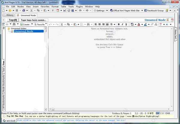 Aml Pages可以将您的所有笔记、信息、网页、密码、电子邮件或者URL以树形形式保存,您可以在其中快速找到所需的内容。支持从Web浏览器和文字处理器中保存网页的片段,并提供粘滞便笺,以便快速查看,软件还具备语法突出显示特征,已经支持许多编程语言包括:C ++、Visual Basic、Java、HTML、Pascal等等,方便您在工作和生活中轻松管理大量的笔记。有需求的朋友请下载体验。