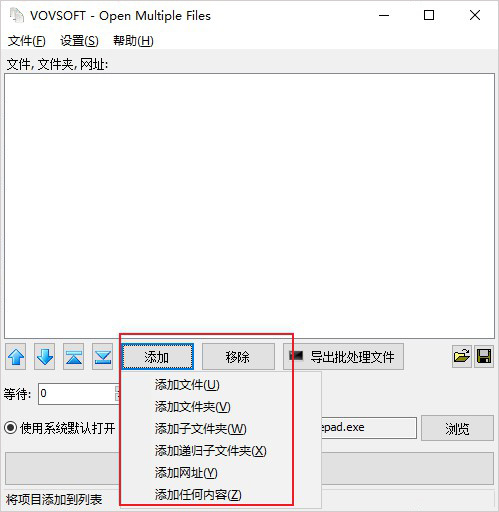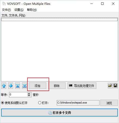 1、下载解压,打开软件Open Multiple File文件多开器,点击添加要打开的程序或者文件;