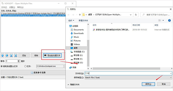 6、另外,该软件还支持导出批量文件,保存为.bat形式,方便之后一键打开界面。