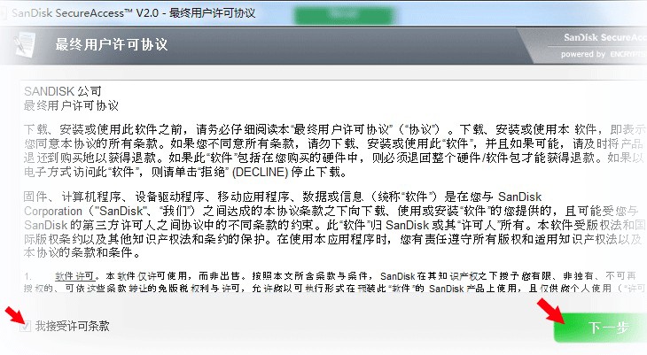 闪迪保险箱中文版ps:您可以通过使用密码推荐勾选框来减弱或增强您的密码强度,点击OK,最后点击下一步即可。