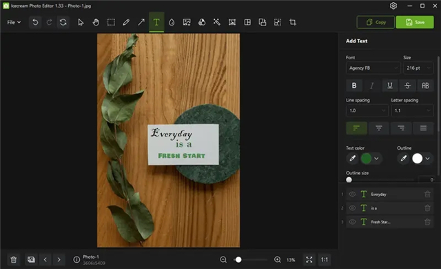 当您使用冰淇淋图片编辑器时,添加文本是很容易的。你可以控制所有的基本参数-字体、尺寸、重量、颜色、不透明度等。