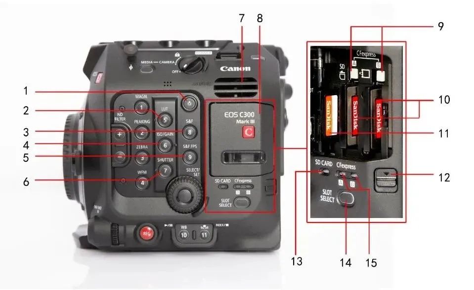14、SLOT SELECT(CFexpress卡选择)按钮
