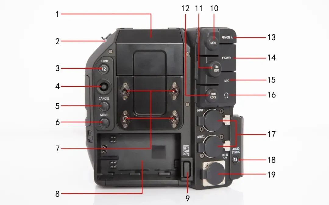 3、FUNC(主要功能)按钮/摄影机可指定按钮12