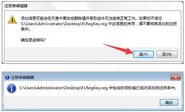 5、双击“FLRegKey.reg”添加到注册表,点击是。