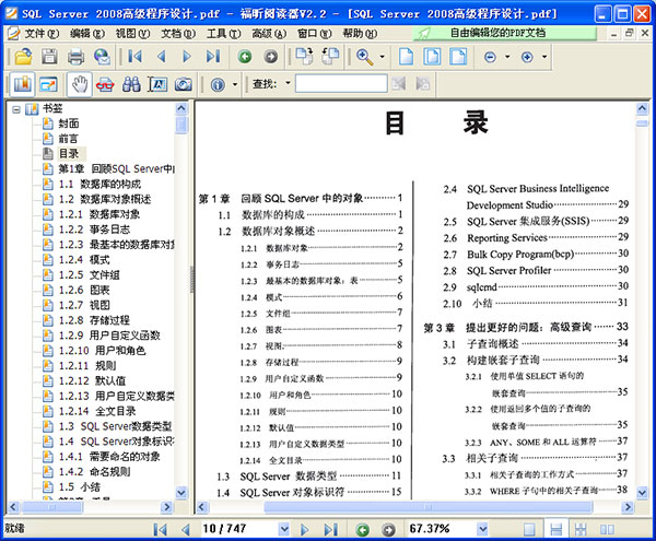 对我个人来说,这本书感觉挺适合新手的,但对老手也有帮助,特别是进阶的部分。内容涵盖了数据设计、提高运行速度、存储过程、报表服务等知识点,还提到了安全性、XML支持和推理分析这些高级功能。附带的福昕阅读器很方便,下载来看不用愁。