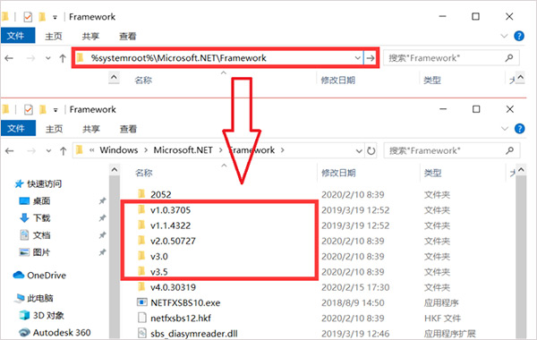1.2、复制%systemroot%Microsoft.NETFramework到文件管理器地址栏按键盘【Enter】键;
