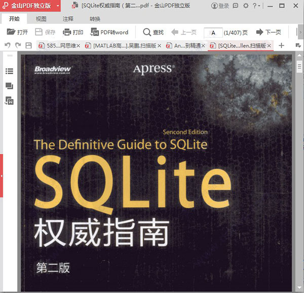 《SQLite权威指南 第二版》是一本由格兰特·艾伦和迈克·欧文斯合著的书籍,内容涵盖了SQLite的起源、特性、使用方法以及深度解析。书中不仅适合SQLite新手,也对资深用户和技术爱好者有帮助。全书从基础SQL到高级功能,再到各种语言扩展和移动开发(如iOS和Android)都有详细讲解,并配有丰富实例。个人觉得这本书非常适合学习SQLite的人阅读,尤其是想深入了解其内部机制和新特性的开发者。虽然内容较多,但结构清晰,理论与实践结合得很好,适合不同层次的读者学习和参考。如果你对数据库感兴趣,这本书绝对值得一读!