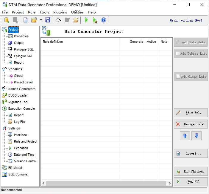 DTM Data Generator官方版是一款为数据库专业人士设计的高质量和实际的测试阵列,该软件使用表单界面,可以与任何的ODBC数据源相连接,且支持所有流行的数据库系统。使用DTM Data Generator表单界面,可帮助用快速测试数据库填充,性能分析,质量保证测试或加载测试实现,功能非常强大,感兴趣的朋友可以下载使用。