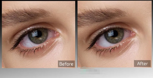 自动检测照片中的眼白并进行修饰。它无缝去除血管和发红;