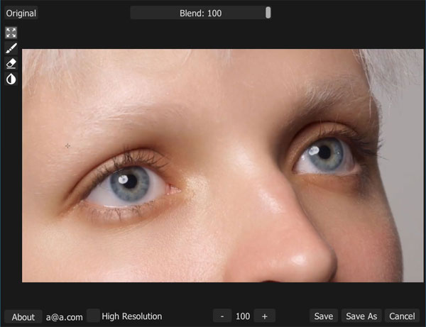 修饰眼睛时可以保留原始形状和自然色彩。尝试自己获得相同的结果,看看是否可以像插件一样进行润饰!