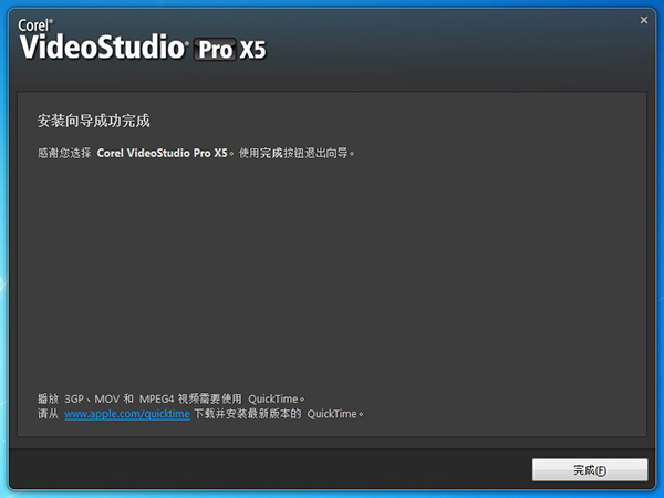 5、完成会声会影x5版的安装 点击【完成】。