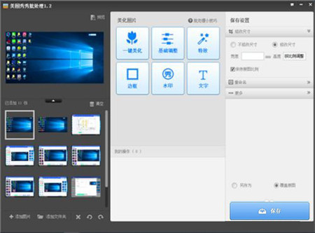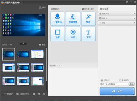 美图秀秀批处理电脑版是一款由美图秀秀推出专门用于图像编辑处理工具,该软件拥有的图片特效、美容、拼图、场景、边框,以及饰品等功能,并且我们每天都会有精选素材进行更新,用户可以自由选择,这样就可以让您1分钟做出影楼级照片。同时对于一个摄影爱好者来说,在每次摄影创作拍摄动辄上百张的照片,需要后期处理的时候,是不是就会感到非常的烦恼?因为一张张的对照片处理实在是一个又累又笨的办法,甚至还需要花费超多的时间。而我们处理图片的速度就非常的快,用户只需一两秒就能完成批量处理。而且这款美图秀秀批处理软件使用起来也是十分的简单,用户只需要将自己想要处理的图片导入到软件中,然后对它进行基础调整,选择自己需要保存的位置,最后点保存按钮即可完成对图片的批量处理操作,是不是十分的便捷易用?有需要的小伙伴可以来我们站下载使用!