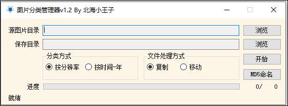 这个图片分类管理器真的挺方便的,适合想快速整理照片但又不想花太多时间的人。软件界面很简单,操作也直观,基本上选好来源和保存路径,再设定分类方式,点开始就能自动处理了。支持按分辨率、时间和文件夹来分类,还有复制或移动文件的功能,特别适合图片很多很乱的时候用。