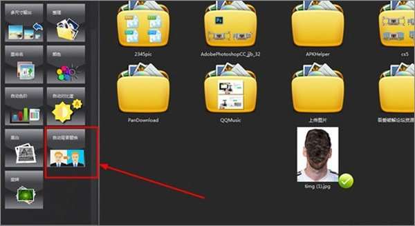 1、照片都能够开展照片底色的拆换,要是是纯色背景的照片都能够运用图片馆软件完成更换背景的目地,在左边的批处理命令中寻找“全自动情况更换”作用,如下图所显示;