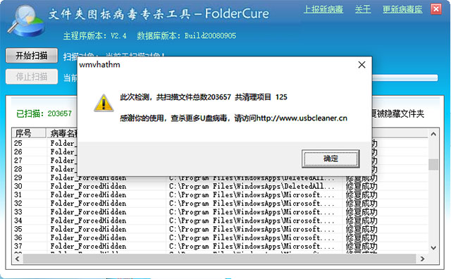 foldercure是一款非常好用的文件夹图标病毒专杀工具,该工具是u盘病毒专杀工具USBCLeaner中的一个增强组件,专门用于清理生成同名文件夹EXE文件,并隐藏原文件夹的病毒。软件功能强大,使用简单井,具有修复显示隐藏文件及系统文件,修复磁盘双击打开,处理磁盘根目录Autorun自运行文件的功能,可以用来查杀电脑和u盘中的文件夹图标病毒,欢迎有需求的用户前来下载使用。