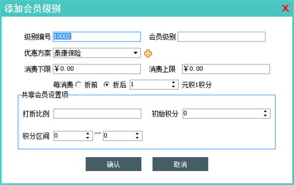 1、会员类型、会员级别设置 说明:会员级别设置中会关联一个优惠促销方案(只会筛选没有有效期的促销方案)。如果启用了会员信息共享(系统设置运行参数:启用会员信息共享),则会员级别设置中会包含折扣和积分上下限的设置(这两项设置只在其他共享酒店会员信息的软件中有效) 启用共享会员信息时: