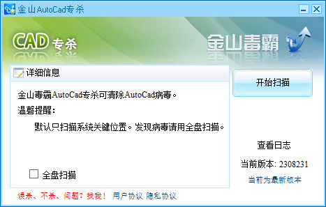 金山毒霸cad病毒专杀工具是专门为cad打造的一款专业杀毒工具。该软件的功能十分强大,利用金山毒霸强大的扫描引擎,能够非常迅速的扫描出系统当中隐藏的病毒文件井进行查杀,然后进行针对性的修复,彻底解决在使用cad中的顽固病毒,使你的cad操作更加流畅。