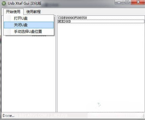 此时不要急着拔下U盘,大功还未告成,选择上方菜单中:开始使用、关闭U盘,程序才会将这两个软件真正的写入U盘中,耐心的等待关闭完成。