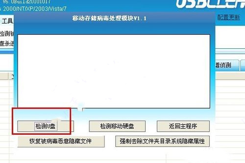 3、单击【检测移动盘】按钮,打开【移动存储病毒处理模块】对话框。
