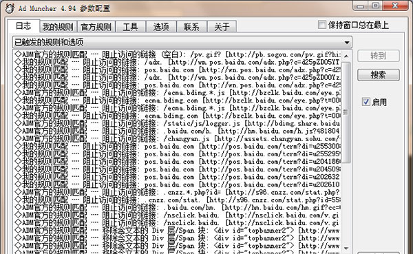 Ad Muncher是一款非常不错的广告过滤软件,其内置1592个过滤器项目,不但可以过滤网页中的广告,拦截弹出窗口,还支持移除网页中的弹出对话框(警告对话框、信息对话框)等。Ad Muncher几乎支持所有浏览器和联网软件,如:IE、chrome、双核浏览器、快播、pps、酷狗等。并附带反弹窗、反跟踪、改UA、破反右键、破反盗链等特色功能。让你化被动为主动,你将不再见到网页中的广告、弹出窗口、MIDI音乐,还你一个舒适的浏览环境与心情。