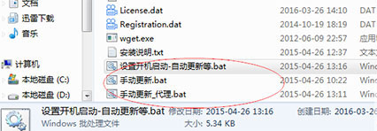 2、打开安装目录,双击批处理“设置开机启动-自动更新等.bat”,按需求设置