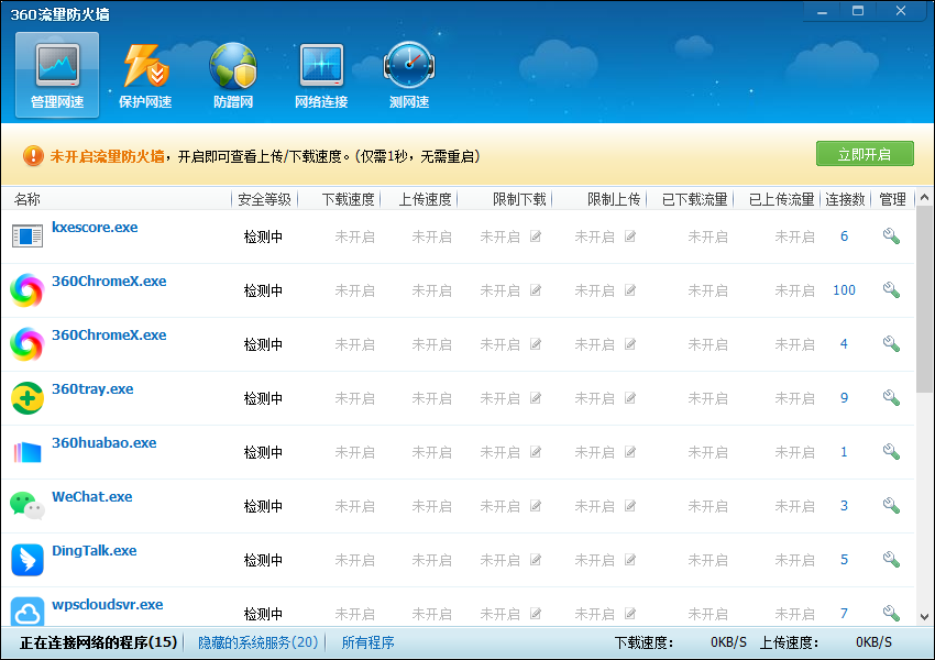 360流量防火墙电脑版是时下非常热门的流量监控管理软件之一,它由360官方响应用户需要从安全卫士中提取出来的绿色独立版,具有无广告、免安装、去除升级的特点,能够根据用户需要监控整个电脑软件流量上传下载速度,查看正在使用网络的所有程序,并附有防蹭网功能,让用户可以清楚知道有什么用户或软件正在偷本地宽带,以方便更好地管理电脑,欢迎需要的朋友免费尝试。