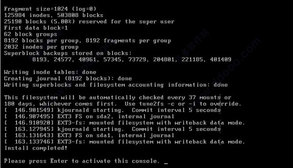 8、安装完成,按回车键激活控制台,等待画面显示如下图: