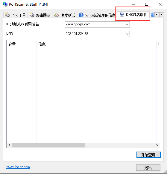 7、设置好ip地址和DNS点击开始查询可以进行DNS的域名解析;