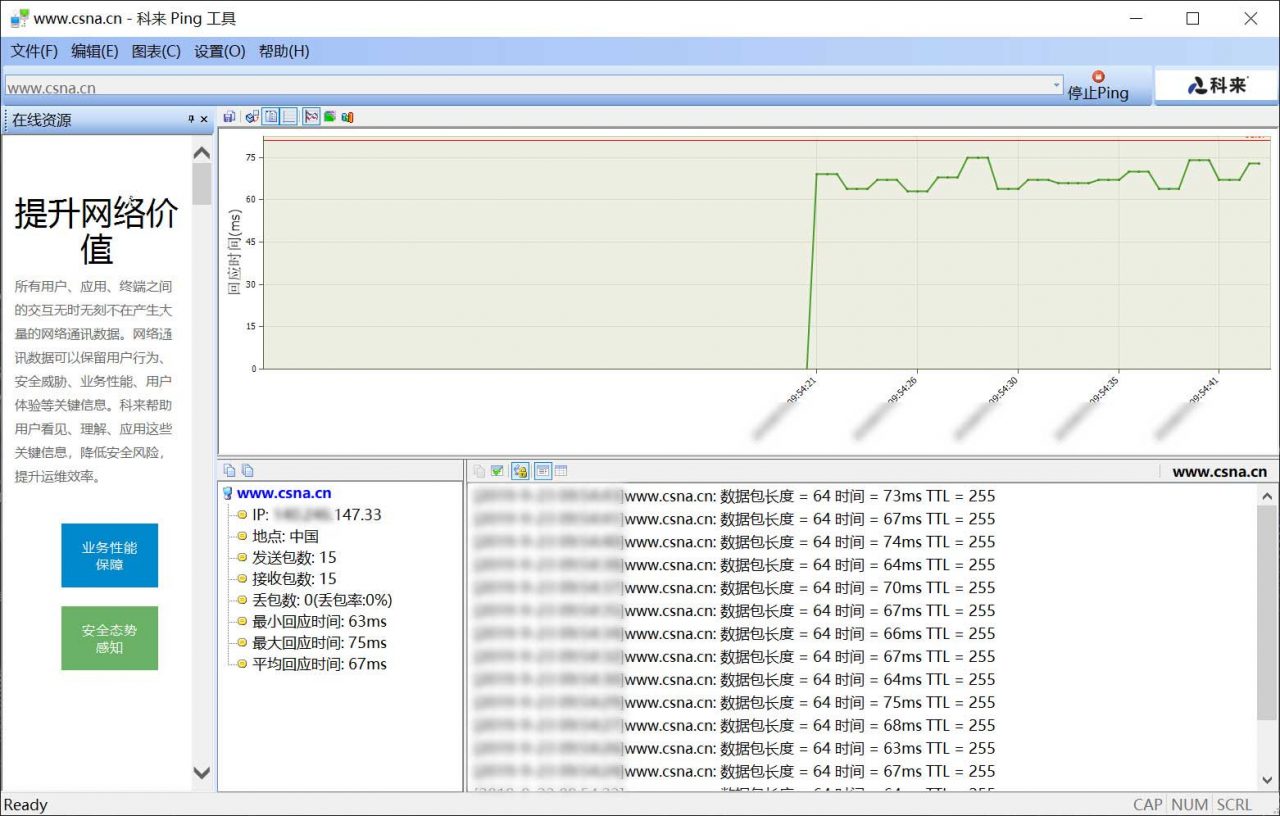 科来ping工具是一个功能强大的连接性能查看工具,用于测试和监测网络中的主机连接和响应时间,可以向目标主机发送ICMP回应请求(即Ping),并显示目标主机的响应时间和状态以及丢包率等信息。