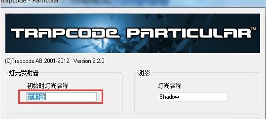 2、我们选择打开particular选项,然后看下图中指示处的初始时灯光名称,将其更改成一样的就好了。